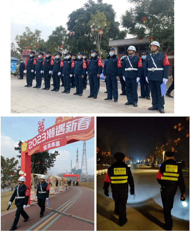 2023年的春節(jié)隨著疫情逐漸好轉(zhuǎn),市政府在金螺灣公園舉辦了德陽(yáng)市第十四屆燈會(huì),經(jīng)開(kāi)區(qū)管委會(huì)在柳梢堰公司舉行了“2023潮遇新春”大型文藝活動(dòng),作為一支強(qiáng)有力的輔警隊(duì)伍,公司義不容辭,和兄弟公司一起承擔(dān)了兩項(xiàng)活動(dòng)的安全守護(hù)工作。