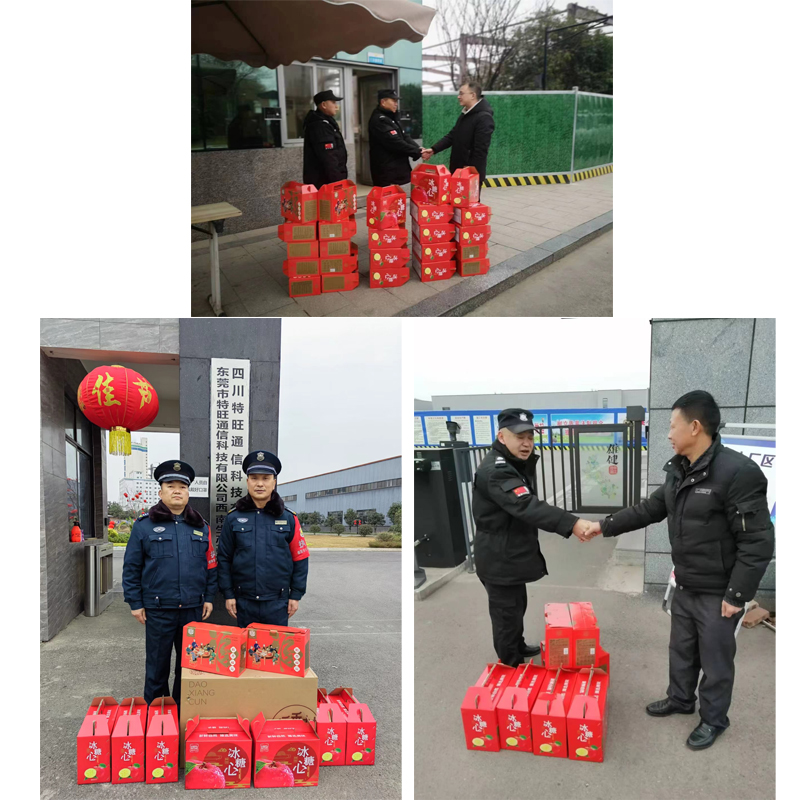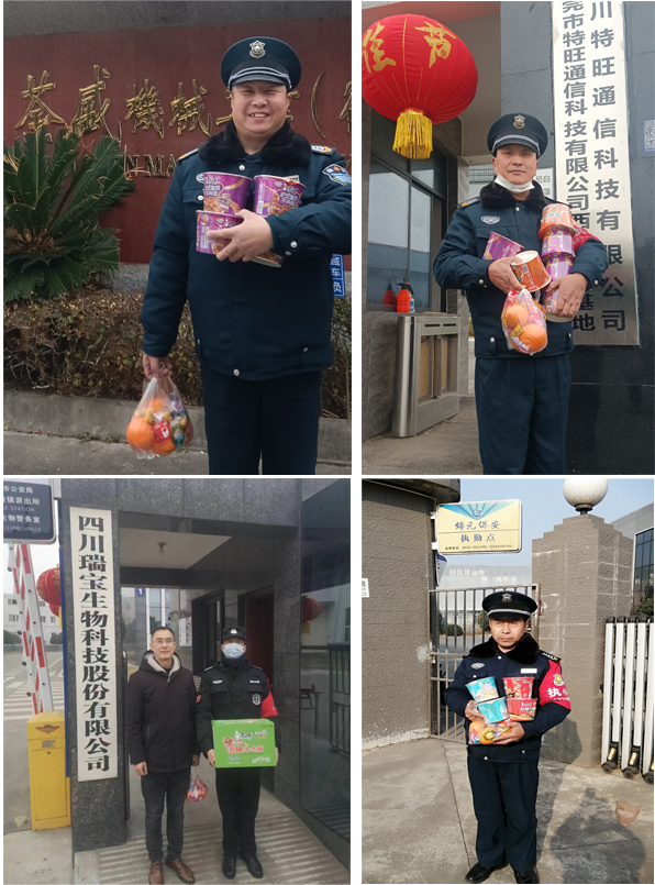 春節(jié),是中國(guó)人萬(wàn)家團(tuán)聚的日子,我們的保安員卻因?yàn)樯砩系呢?zé)任與擔(dān)當(dāng),放棄了和家人團(tuán)聚的機(jī)會(huì),默默地堅(jiān)守在自己的工作崗位上,用平凡的身影詮釋著安全守護(hù)者的職責(zé)。公司管理層帶著禮品與關(guān)懷對(duì)在崗隊(duì)員進(jìn)行了慰問(wèn),并為他們送去了節(jié)日的祝福。