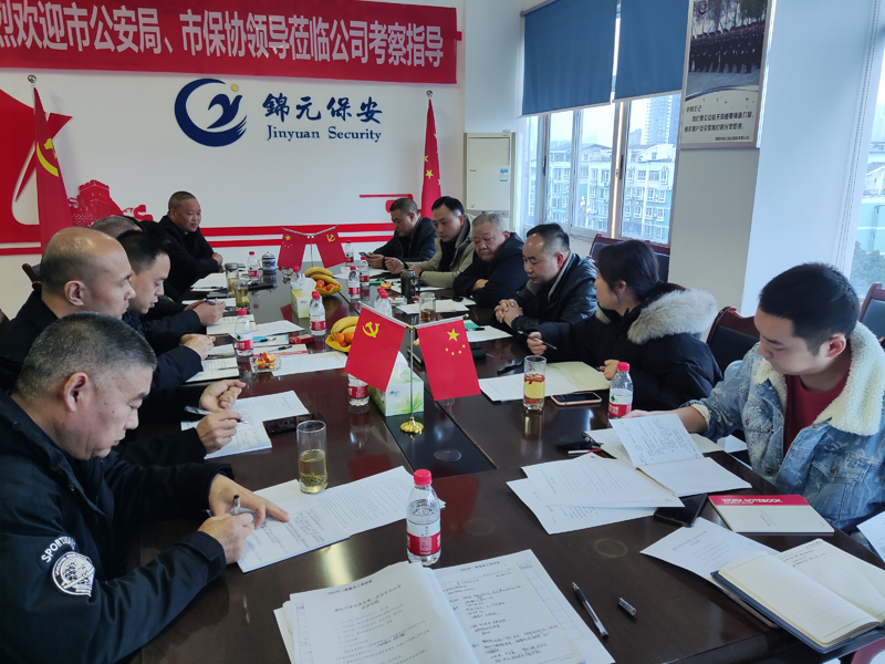 2023年2月9日下午,德陽(yáng)市保安協(xié)會(huì)第二次會(huì)長(zhǎng)辦公會(huì)在錦元保安公司會(huì)議室舉行。德陽(yáng)市公安局治安管理支隊(duì)主管保安監(jiān)管領(lǐng)導(dǎo)、德陽(yáng)市保安協(xié)會(huì)會(huì)長(zhǎng)、副會(huì)長(zhǎng)等一行同志參加會(huì)議,同時(shí),與會(huì)領(lǐng)導(dǎo)對(duì)錦元保安公司進(jìn)行了視察指導(dǎo)。