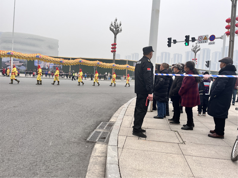 活動期間,安保人員協(xié)同執(zhí)勤民警共同對巡游道路沿線進(jìn)行值守,全力做好現(xiàn)場秩序維護(hù)工作,確保所有表演隊(duì)伍的現(xiàn)場安全。本次活動共投入安保力量約250余人次,巡查重點(diǎn)主要包括主會場周邊區(qū)域、民俗展演區(qū)、新春市集、巡游道路沿線、關(guān)鍵路口。通過進(jìn)一步加強(qiáng)活動現(xiàn)場的安保力量,有效排查整治現(xiàn)場的安全隱患,有力保障了本次活動的順利開展,展現(xiàn)出專業(yè)的素養(yǎng)和良好的形象。本次活動的現(xiàn)場安保工作及保安員的專業(yè)素質(zhì)等得到了現(xiàn)場參演隊(duì)伍及市民的廣泛認(rèn)可,為將來做好各類大型活動現(xiàn)場安保工作積累了寶貴的經(jīng)驗(yàn)。